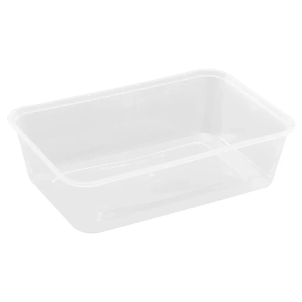 Plastform PP Klar 175x120x45mm 650ml. Staplingsbara rektangulära mikroformar som passar för både varm som kall mat, tål uppvärmning i mikrovågsugn.