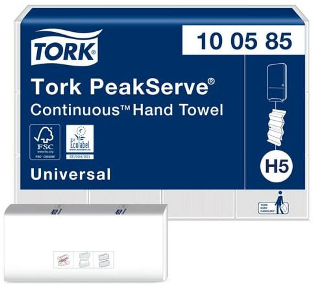 Komprimerade handdukar för Tork PeakServe med extra hög kapacitet 1-lagers vita pappershanddukar av baskvalitet (Universal) för Tork PeakServe Dispenser H5. Komprimerade handdukar som ger hög kapacitet och färre påfyllningar samt bättre genomflöde i toalettutrymmena. Kontinuerligt flöde av handdukar, även mellan buntarna, ger ett bättre flöde av gästerna i toalettutrymmet Ekonomisk förpackning och utmatning av en handduk i taget minskar förbrukning Easy Handling-förpackningar med handdukar som är komprimerade med 50%, för effektiv hantering, transport och lagerhållning - 1-lagers, vit - Längd, ovikt: 22.5cm, Bredd, ovikt: 20.1cm - Längd, vikt: 8cm - Bredd, vikt: 20.1cm - Nyfiber - FSC-märkt - EU Ecolabel: licensnummer SE/004/001