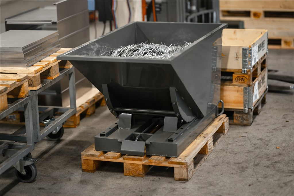 Tippcontainer med automatisk tippfunktion fär säkert arbete.